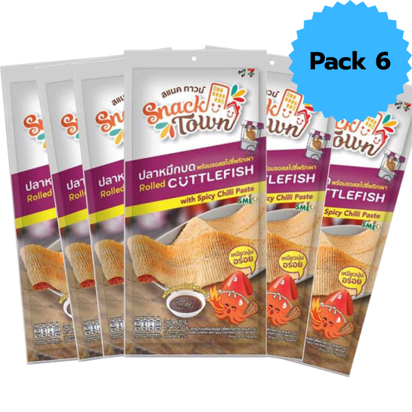 Baked Cuttlefish With Spicy Chilli Paste 25g ( Pack 6 ) | ปลาหมึกบดพร้อมซอสสไปซี่พริกเผา 25g ( แพ็ค 6 )